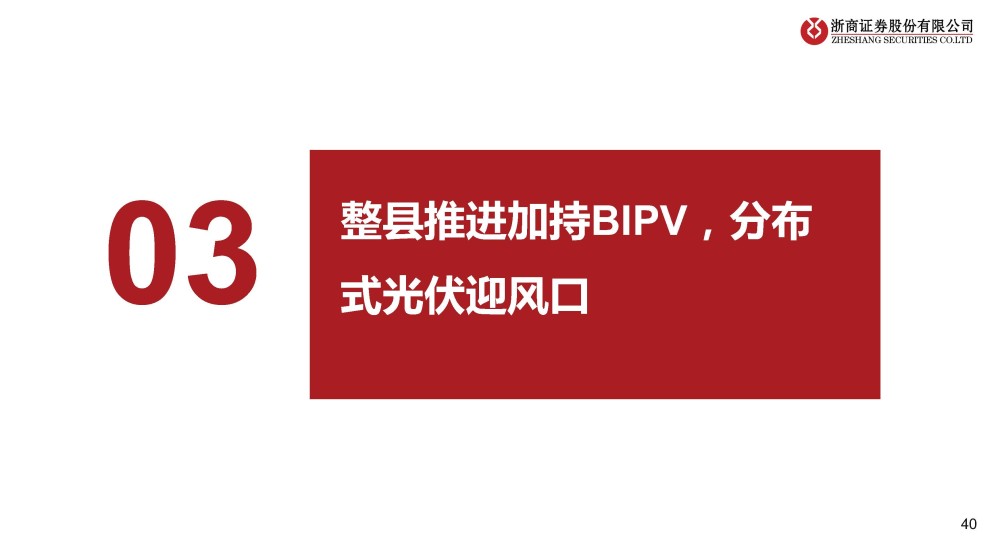 BIPV(Building Integrated Photovoltaic)指光伏建筑一体化,与BAPV(Building Attached Photovoltaic)相比,BIPV能够将建筑与 光伏深度结合,在使用寿命、美观程度、防水效果等多方面都具备突出优势。近年来,随着中国减碳目标的不断推进,能够帮 助建筑碳减排的BIPV已经成为了未来建筑的发展方向,考虑到BIPV能够运用在旧屋改造、新房建造等多个场景,未来市场空 间巨大,渗透率有望持续提升。