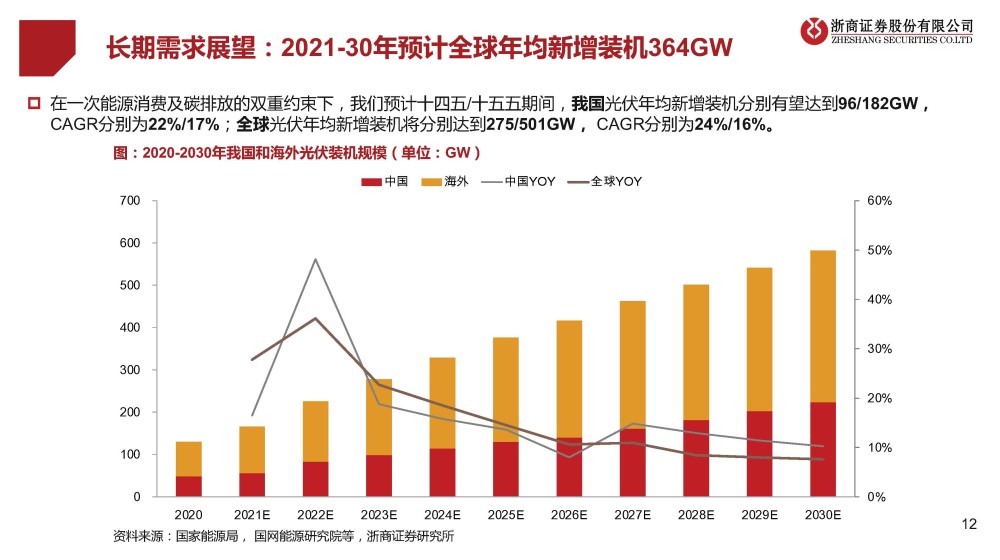 长期需求展望:2021-30年预计全球年均新增装机364GW