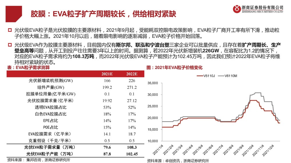 胶膜:EVA粒子扩产周期较长,供给相对紧缺